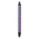 A pen with a colorful geometric pattern on the barrel; black grip and clicker on both ends. The tone is vibrant and modern, shown in front and bottom views.