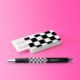 Caneta de padrão de tabuleiro de damas preto e branco simples e moderno apresenta seu nome em uma fonte moderna. Mova e redimensione os elementos com a ferramenta de personalização. Parte de uma coleção. Para materiais de marketing adicionais correspondentes, por favor envie um e-mail para themarisuvalencia@gmail.com ou envie-me uma mensagem via chat do Zazzle. Design original por Marisu Valencia.
