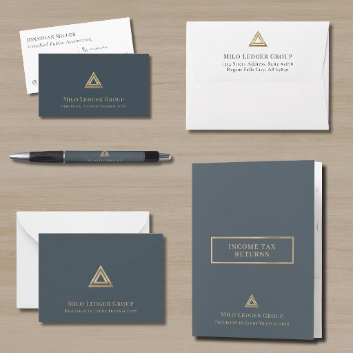 Luxury Gray Gold Triangle Logo Business EssentialsCriado por Amy Daniels