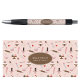 Um padrão de utensílios de cozinha e padaria temático rosa e marrom fofo. Ilustrações temáticas de cozinha de padaria incluem um rolo de massa, batedeira, saco de confeitar, sobremesas, espátulas, colheres e mais. Adesivo perfeito para negócios de confeiteiro caseiro, chef de confeitaria profissional, padaria, loja de sobremesas e mais.