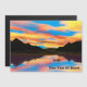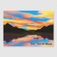 Uma canoa atravessando um lago de montanha refletindo as belas laranjas e blues de um pôr do sol colorido. Adicione seu próprio texto.