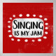 "Singing Is My Jam" é um design de texto divertido com uma forma de sotaque branca cercado por pontos brancos texturizados.