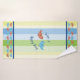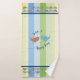 Toalha personalizada divertida e colorida com tiras coloridas e aves decorativas, com o texto "Cante uma canção feliz" Você pode personalizar o texto, a fonte e a cor da fonte no momento do pedido. A design de toalha é impressa apenas no lado frontal, a parte traseira da toalha é branca. Esta design é criada por mim, quando você a toalha será impressa por uma empresa de realização Zazzle.
