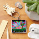Um design digital do vidro colorido no estilo do art deco popular no século XX. O motivo amplamente utilizado do sunburst é central, aumentando atrás de uma paisagem verde equilibrada por uma árvore em um lado e nuvens e flores no outro. As formas geométricas são usadas para sublinhar a simetria da cena, com a árvore e as nuvens feitas de círculos de sobreposição. Os vários fractals brilhantemente coloridos dão a textura "de vidro" e interessam-na. A cena é moldada na indústria siderúrgica preta e no fosco diamante-dado forma dos blocos com obscuridade mas padrões vívidos do fractal.