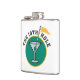 Um vidro completo de martini com uma azeitona com um marcador do furo do golfe para dentro dele.