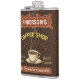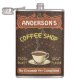 Esta garrafa café-temático da bebida é para qualquer um que funciona sua própria cafetaria ou tem um tema do café em sua decoração home da cozinha. Feito em marrom retro, alaranjado, bege e amarelo, estes café/cappuccino inspirou características de design um o copo em uns pires, em duas bandeiras personalizadas do texto e nas palavras "cafetaria/assado fresco/grande sabor" no amarelo.