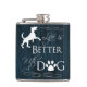 Um frasco perfeito para aqueles que encontram vida muito melhor com um cão. Este design de frasco apresenta texto que diz "A vida é melhor com um Cachorro." com uma estampagem de pata e um embelezamento de silhueta de cão contra um fundo azul-rústico profundo de madeira. Itens de presentes adicionais disponíveis com este design também.