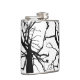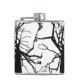 Este frasco de anca apresenta um padrão de abstrato artístico, preto e branco do topo de uma tulipa no inverno, com ramos nuos na silhueta.