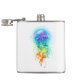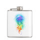 Água-viva grande, iridescente, desenhada artisticamente, brilhante, com longos tentáculos em branco, pintada sobre fundo de aquarela multicolorido. Água-viva arco-íris.