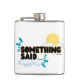 Você sabe essa voz na parte de trás da sua cabeça quando se prepara para esgueirar uma bebida... enquanto joga golfe... ou sai com as garotas... ou na festa de aniversário das crianças? ENTÃO... "Algo disse" ...NÃO BEBA E DIRIJA... Sim, você ouviu a voz dentro da sua cabeça corretamente. Pegue um DD.. (motorista designado) e carregar com o seu frasco ... é o que "Simething Said" *SOMENTE PARA USO ADULTO* "Algo dito" se você estiver abaixo de 21, este produto NÃO é para você ❣️