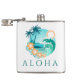 Gráfico tropical oceânico com "Aloha" em fontes modernas