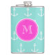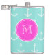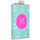 Padrão de âncoras náuticas, de tendências, verdes de menta e brancas com sua letra inicial em uma fonte moderna, em um rótulo de círculo rosa quente, faixa, quadro com borda circular branca. GraphicsByMimi© Padrão de âncora moderno, fofo e pré-disquete que você pode personalizar com seu monograma para ela. Use o campo modelo para adicionar inicial ou letra do seu monograma ou selecione "personalizá-lo" para mais opções de edição, como adicionar seu nome, texto ou foto para fazer seu próprio design personalizado, exclusivo, personalizado e de tipo único. Outras cores disponíveis.