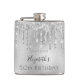 Um presente para uma festa de aniversário de cinquenta e glamourosa (ou qualquer idade). Uma folha metálica fina e prateada com aspecto de fundo decorada com pingos de brilho sujo, aparência de pingar de tinta. O texto: O nome é escrito em preto com um moderno script de estilo escrito à mão. Personalize e adicione um nome, 50 anos e uma data.