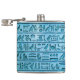 Um belo frasco de licores com linhas de hieróglifos antigos gravados em azul na pedra.