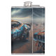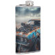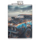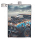 Blue Classic 1969 Chevy Camaro com soprador e manchas de ferrugem no deserto durante o apocalipse.