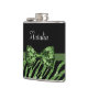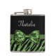 Imerja-se no luxo feminino com esta garrafa verde e preta chique do desenhista do brilho da zebra do impressão com uma fita da faísca do sequin amarrada em um arco luxe. Personalize estes glitz e design animal glam da forma do impressão adicionando seu nome. Imagem impressa do plano, brilho nao real ou fita.