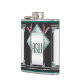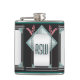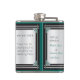 Este frasco personalizado da anca coordena com a Série Casada "Pussy Willow" da "Art Deco Pink" da "MarryType", a frente apresenta um retângulo prateado centrado adornado, com vidro com chumbo aqua, moldagem de pedra turquesa, salgueiros rosa alto e bares de suporte de prata, todos colocados sobre um fundo preto. Os campos de texto personalizados para as iniciais do destinatário na frente e no verso são campos para data, uma mensagem pessoal, a saudação e o(s) nome(s) do(s) destinatário(s).