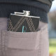 Frasco de na moda, feito num design do estilo Art Deco, em triângulos pretos, turquesas e dourados. Um monograma de letras turquesas solteiros está pronto para personalizar. Uma bela ideia de presente para ela.