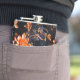 Este frasco tem flores artísticas nele.
