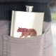 Esta design é o esboço de um urso com um pomar vermelho ou marrom para bege de gradiente de cor e a silhueta de um dentro de árvore.