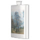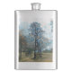 Um design de arte de outono de uma árvore de abetos e uma pessoa desfrutando de paz e tranquilidade.