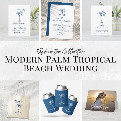 Modern Blue Palm Tree Tropical Beach WeddingCriado por Laura C.