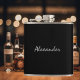 Frasco de bebida personalizado com texto elegante. Cor de fundo preto personalizável. Boa ideia de presente para homens. Personalize-o com um nome ou com uma sigla monográfica. Álcool / Bebendo presente que você pode personalizar.