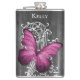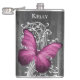 Desfrute dos seus espíritos favoritos quando você está longe de casa com um frasco personalizado de borboleta rustica magenta. O design de fenda apresenta duas borboletas contra uma folha branca e uma cinza escura de fundo de madeira. Itens adicionais disponíveis com este design também. Entre em contato comigo diretamente para obter assistência com a personalização.