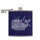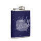 Bonita e amigável, esta Baleia Azul, Olá Lá Flask é a maneira perfeita de quebrar o gelo em um evento. A cor de fundo azul pode ser alterada para ajustado do seu esquema de cor inicial. Imagem elegante e escrita à mão: "Baleia, Olá Lá."