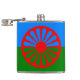 Bandeira oficial de viajantes ciganos romanos, verde e azul, representando a Terra e o céu com uma roda vermelha, representando viagem. Personalize este design excluindo ou alterando o texto. Visite a LOJA OCONNART para ver os produtos correspondentes e mais presentes ciganos.