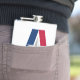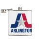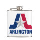 Flask com a bandeira de Arlington, Texas. Uma bandeira branca com uma letra A azul e vermelha e uma estrela prateada no centro