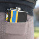 Frasco de vinilo com design com uma bandeira do condado histórico de Caithness, na Escócia, Reino Unido Excelente; bandeira negra com cruz nórdica azul e amarela e uma ilustração de um navio com um riacho à vela no assoalho superior