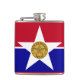 Frasco de vinilo com pavilhão da cidade de Dallas, Texas; bandeira com banda vermelho e azul com selo da cidade de uma estrela branca no centro