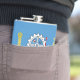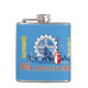Flask with flag of city of Milwaukee, Wisconsin; light blue flag with city panorama