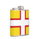 Frasco de vinilo envolto em design com uma bandeira do condado histórico de Dorset, em Inglaterra, na Grã-Bretanha Excelente; bandeira amarela com uma cruz branca com uma fronteira vermelha