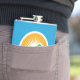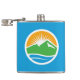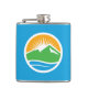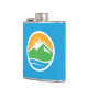 Flask com um design com a bandeira de Provo, Utah. Uma bandeira azul com o logotipo da Cidade do Provo no centro. O logótipo representa o lago de Utah e os picos de montanha próximos com o sol ascensão ao fundo