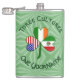 Frasco grande, personalizado, apresenta uma pedra-champanhe com uma bandeira diferente em cada folha, representando as culturas mexicana, irlandesa e americana. Acima, as palavras TRÊS CULTURAS. Abaixo, UM NOME. Adicione seu nome em letras verdes, ou de outra pessoa, no lugar apropriado, para criar um item ou presente personalizado. Tome a Rua. Dia de Patrick, Cinco de Mayo, 5 de eventos de julho, assim como reuniões familiares.