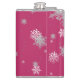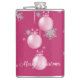 Aproveite as suas bebidas alcoólicas favoritas nesta temporada de férias com um frasco de Vinil, Enfeites de natal Rosa. Design de fenda apresenta um trio de Enfeites de natal suspensos com flocos de neve em queda e um fundo rosa escuro. Itens adicionais de presentes e feriados disponíveis com este design também.