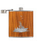 Um cromo prateado de estilo náutico moderno, como o aplicado num decor de impressão de madeira de teak, para um belo presente de frasco personalizado. Use o link "Perguntar a este Designer" para entrar em contato conosco com suas solicitações especiais de design ou para obter assistência com qualquer das suas necessidades de personalização.
