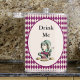 Adicione um pouco de Alice no País das Maravilhas com este design de "Beba-me" de Chapéu Louco. Apresenta o texto "Beba-me" acima do Chapéu Louco, em magenta, e no centro rodeado por um tabuleiro magenta e de harlequin creme. Este design adiciona um pouco de humor e capricho de um livro de histórias.