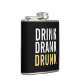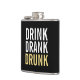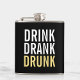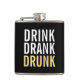 Beber Bebado | Black and Dourado Chic Funny Flask com a frase "Drink Drank Bebado" no estilo de letra de texto em negrito. Note-se que a folha de ouro apresentada no produto é um efeito impresso e não uma folha de ouro real.