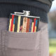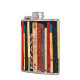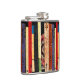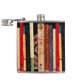 Esta garrafa do quadril caracteriza uma prateleira de livros coloridos. Formam um teste padrão geométrico vertical abstrato interessante nas cores de verde, de amarelo, de vermelho, de azul, de preto e de cor-de-rosa.