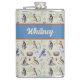 This lovely flask features an avian pattern of kingfishers, robins, blue jays, woodpeckers, nests with eggs, and more. Great way to stay hydrated while listening to birdsong or gift for the nature lover or birder in your life. Your or your recipient's name appears in a cream color against a color block of robin's egg blue.