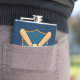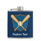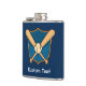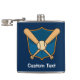 Ícone de beisebol com dois morcegos e uma bola sobre um escudo azul. Cor de fundo personalizada. Custom Text.