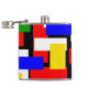 Blocos coloridos vermelhos, amarelos, azuis e verdes num balão de fundo preto. Por celeste@khoncepts.com #geometricdesign