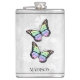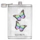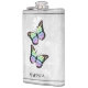 Aproveite as suas bebidas alcoólicas favoritas a qualquer momento com um frasco de vinilo florido borboleta-arco-íris. O design de fenda apresenta um par de borboletas vibrantes que repousam sobre uma vinha floral branca contra um fundo de cinza claro. Itens de presentes adicionais disponíveis com este design também.