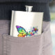 Arco-íris, borboleta monarca luminosa, pintada artisticamente com buquê de rosas iridescentes, brilhantes e luminescentes sobre fundo preto. Borboleta-arco-íris.