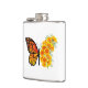 Borboleta de monarca laranja com asa decorada com papoila amarela e vibrante da Califórnia em fundo branco.