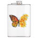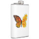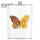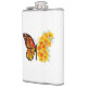 Borboleta de monarca laranja com asa decorada com papoila amarela e vibrante da Califórnia em fundo branco.