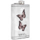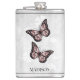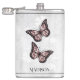 Aproveite as suas bebidas alcoólicas favoritas a qualquer momento com um frasco de vinilo florido de borboleta rosa. O design de fenda apresenta um par de borboletas vibrantes que repousam sobre uma vinha floral branca contra um fundo de cinza claro. Itens de presentes adicionais disponíveis com este design também.